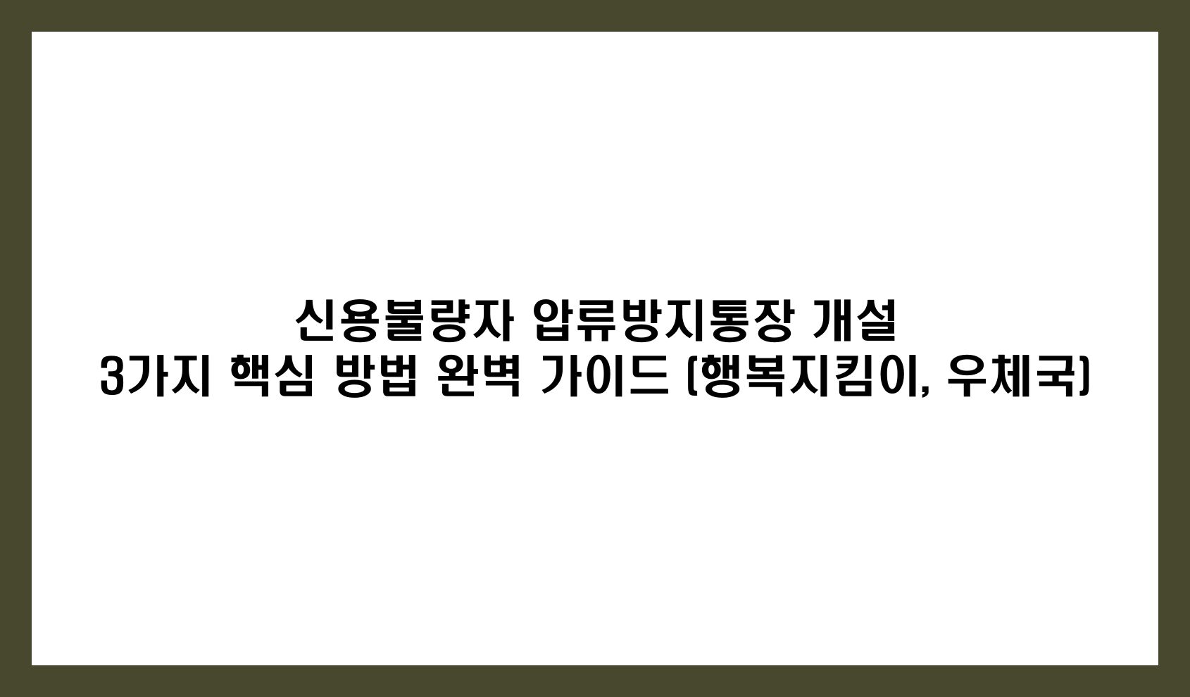 - 중복 개설 금지: 압류방지통장은 전 금융기관을 통틀어 한 사람당 딱 하나만 만들 수 있습니다.
