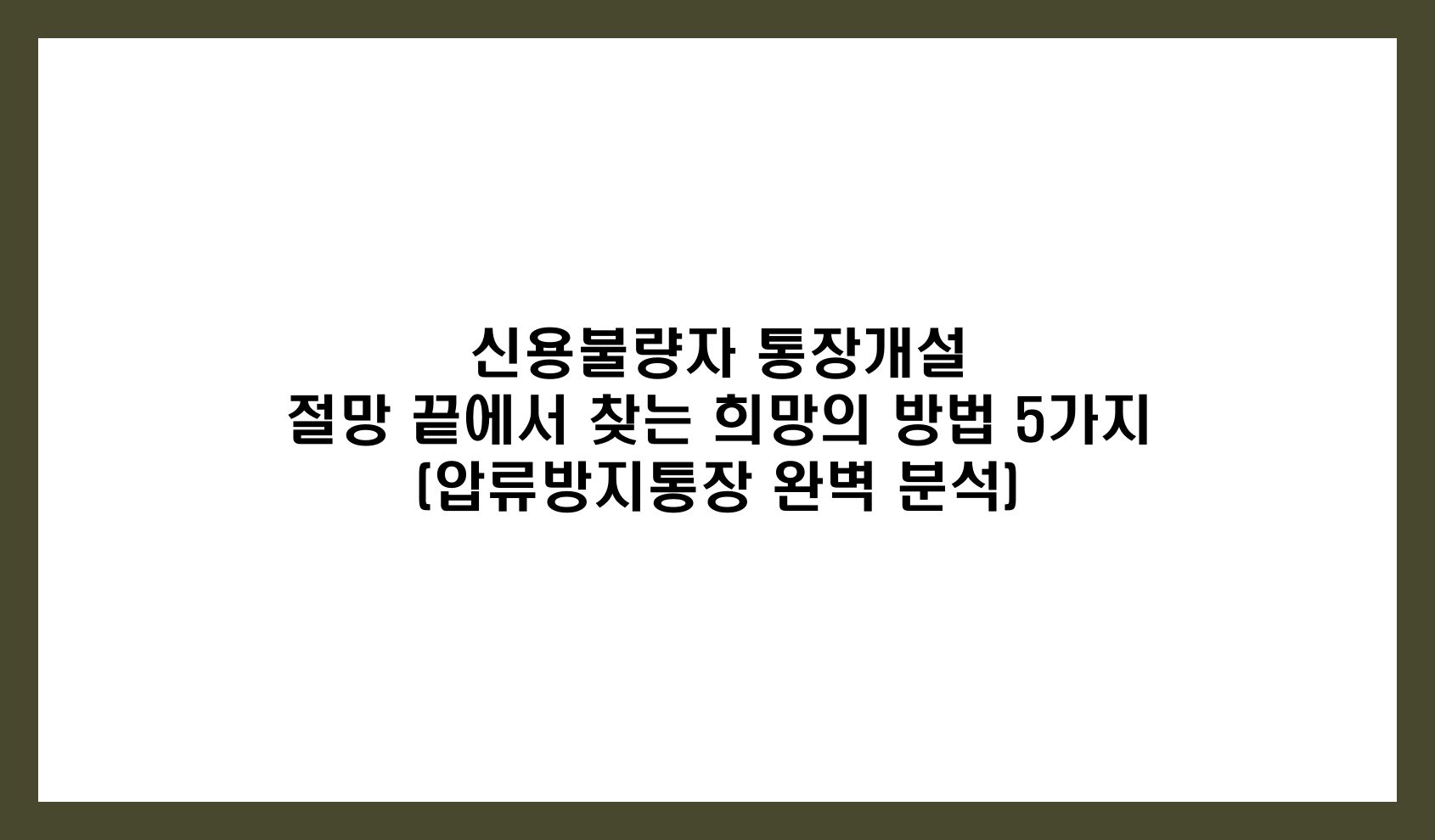 신용불량 상태에서도 합법적으로 통장을 만들고 소중한 자산을 지킬 수 있습니다. 특히 채권자의 압류로부터 자유로운 '압류방지통장'은 반드시 알아두어야 할 핵심 정보입니다. 이 글에서는 벼랑 끝에 선 심정으로 정보를 찾는 분들을 위해, 통장 개설의 현실적인 방법부터 압류를 막는 구체적인 전략까지 A to Z로 풀어드리겠습니다.